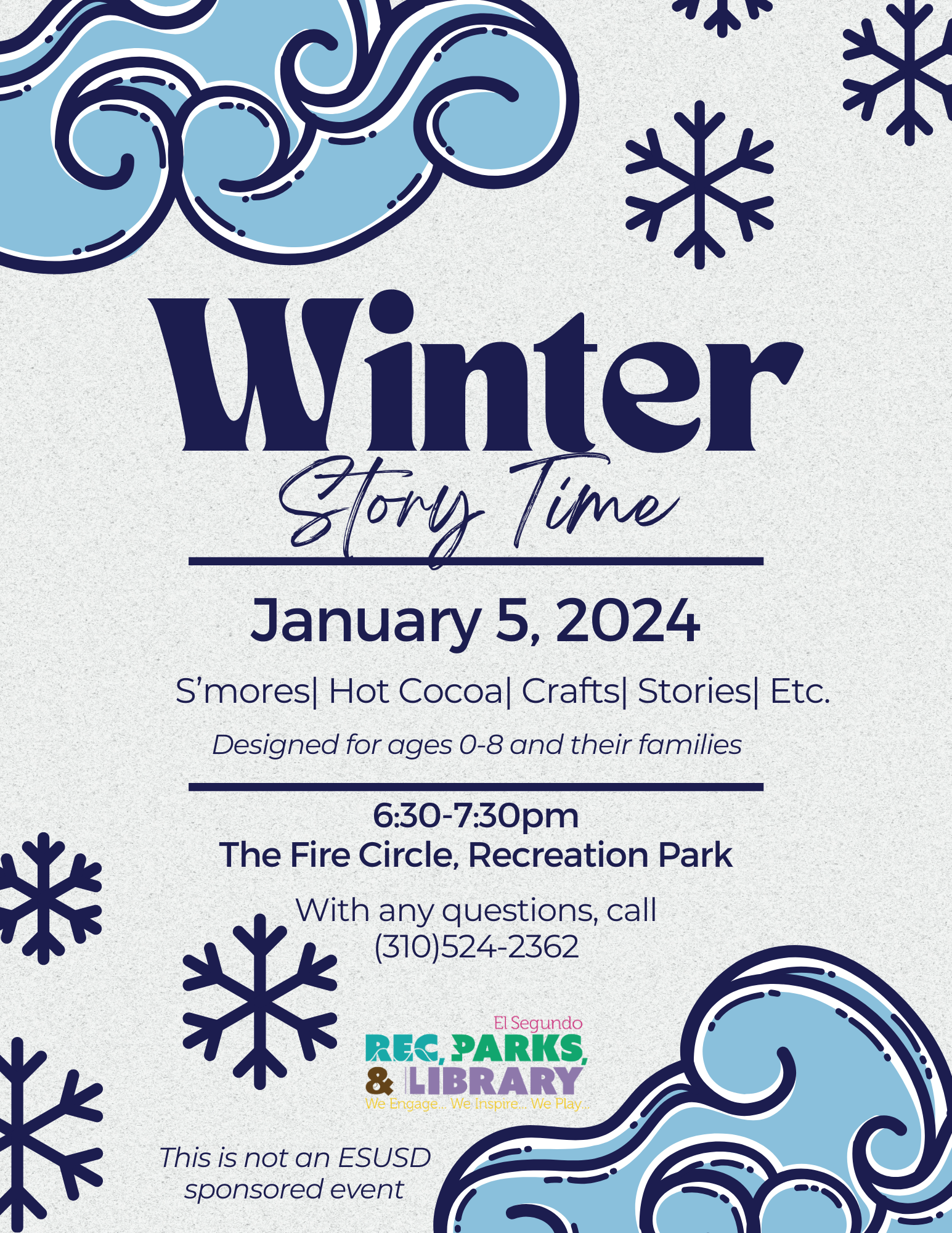 The El Segundo Recreation, Parks, and Library Department offers high-quality parks and recreation facilities, the El Segundo Library, community service programs, recreation classes, events and activities. The Department is versatile in its service delivery by providing vital public transportation in addition to offering valuable programs and enrichment opportunities for all ages and abilities.